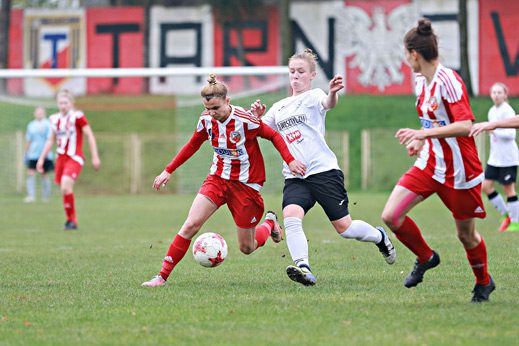 W drugiej połowie „biało‑czerwone” kontrolowały przebieg rywalizacji i zdołały jeszcze podwyższyć po kontratakach. Najpierw trafiła Agnieszka Derus, potem swoją drugą bramkę dołożyła Białoszewska. W rezultacie gospodynie pewnie triumfowały 4:0.
