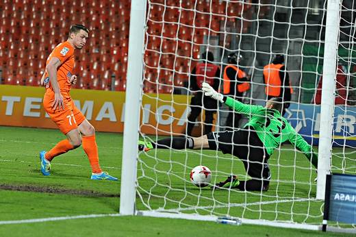 Ostatecznie oczekiwania drużyny i jej kibiców w żadnym stopniu się nie zrealizowały, choć pierwsza połowa nie zapowiadała jeszcze dalszego biegu wydarzeń. Co prawda wszystko zaczęło się od trafienia świetnie dysponowanego w ostatnim czasie Roberta Picha, który już w 5. minucie pokonał Krzysztofa Pilarza i zapewnił gościom prowadzenie. Jednak w 18. minucie meczu szczęście uśmiechnęło się do Artema Putiwcewa – stoper „Słoników” wykorzystał piłkę odbitą od Mariusza Pawełka i z najbliższej odległości trafił do siatki, doprowadzając zarazem do wyrównania. Potem w pierwszej połowie gra toczyła się często w środku boiska, a dogodnych okazji obydwu ekipom brakowało.