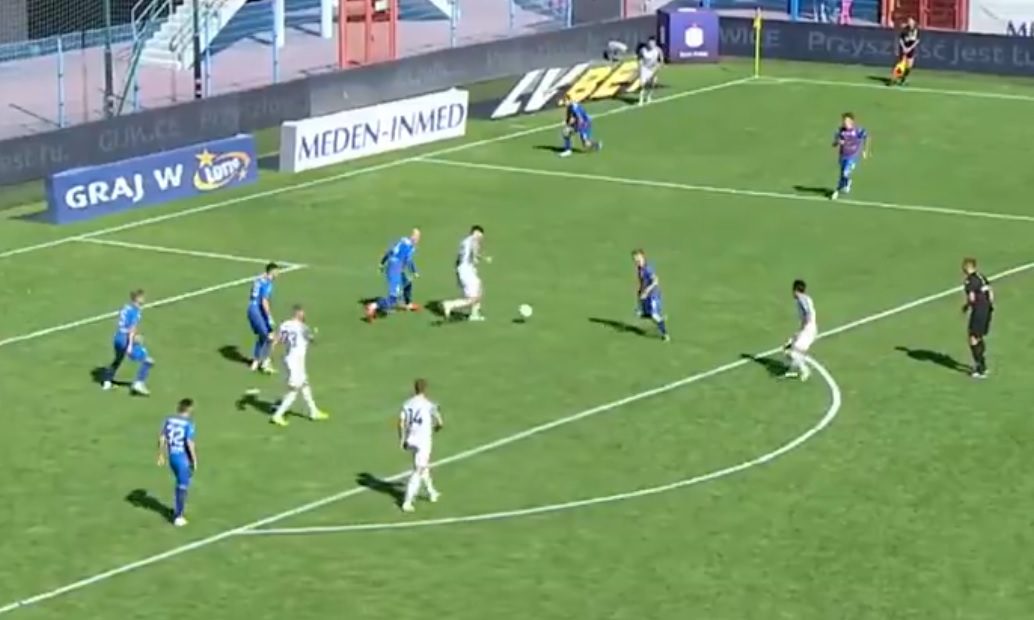 71. minuta – w polu karnym doszło do zagrania ręką. Z karnego nie mylił się natomiast Michał Chrapek. Bliskim skutecznej interwencji był przy jego próbie Komar.