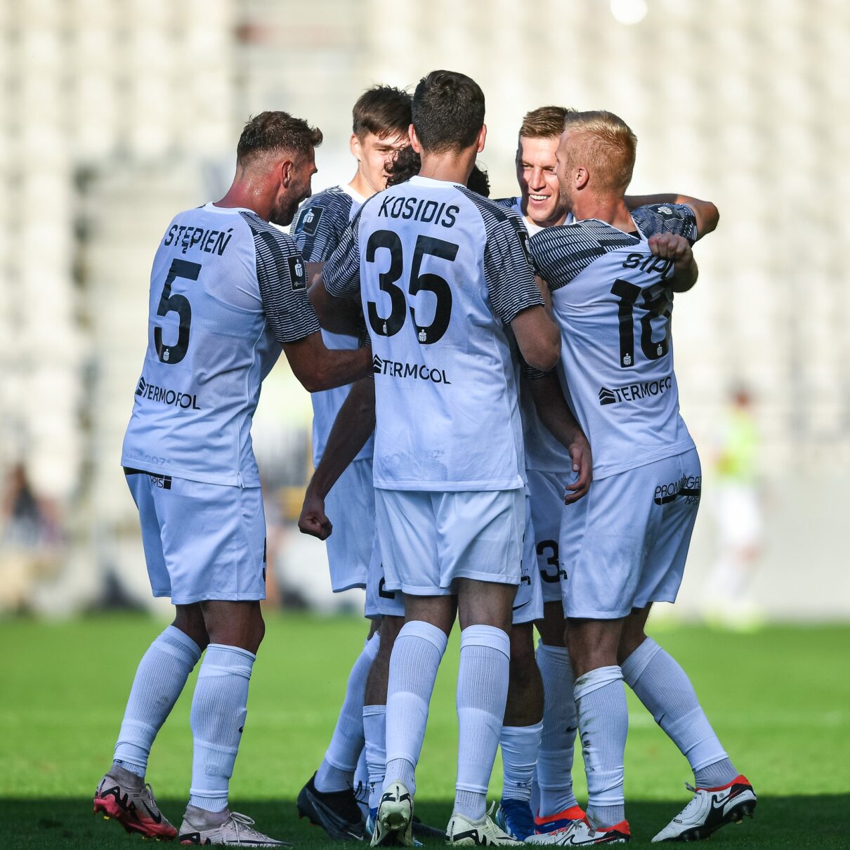 33. minuta – kolejny gol dla Puszczy Niepołomice. Po dograniu z lewej strony piłkę do siatki skierować zdołał główkujący z bliskiej odległości – Michális Kosidis.