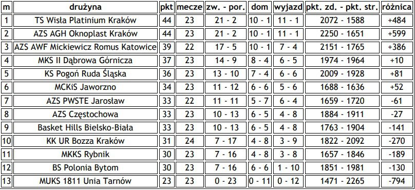 Ostateczna tabela grupy „C” II ligi koszykówki mężczyzn: