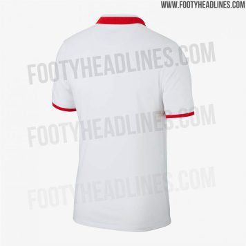 Domowy trykot będzie tradycyjnie w białym kolorze z elementami czerwieni. Charakteryzować się będzie biało-czerwonym kołnierzykiem i godłem znajdującym się na środku.