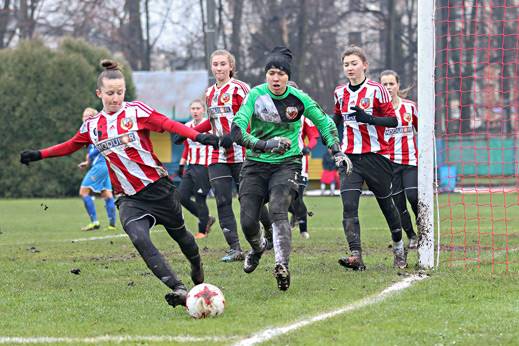 Tarnowianki znalazły się więc w 1/8 Pucharu Polski. Na tym etapie trafiły na Czarnych Sosnowiec, zespół z powodzeniem występujący w kobiecej ekstralidze (obecnie znajdujący się na najniższym stopniu podium tabeli), który w składzie ma m.in. aktualne reprezentantki Polski. Pucharowy mecz z faworyzowaną drużyną z Sosnowca rozpoczął się w miniony czwartek w samo południe na stadionie przy ulicy Bandrowskiego. Spotkaniu towarzyszyły trudne warunki atmosferyczne i boiskowe.