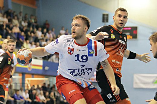 Rywale popełniali natomiast błędy techniczne, wyglądało to tak, jakby grali sparing przed czekającymi ich meczami w europejskich pucharach. W końcu jednak wrzucili przysłowiowy drugi bieg, co dało im niemal natychmiastowy efekt. Zdobyli cztery gole z rzędu, tarnowianie odpowiedzieli jedynie trafieniem Wojciecha Dadeja. W końcówce pierwszej odsłony skutecznością błysnął Łukasz Rogulski, którego goście nie byli w stanie powstrzymać, chociaż Patryk Małecki dwoił się i troił między słupkami tarnowskiej bramki. W efekcie te ostatnie fragmenty pierwszej połowy praktycznie rozstrzygnęły losy spotkania. Drużyna z Puław schodziła do szatni na przerwę z przewagą siedmiu goli – 15:8, a przy tej różnicy potencjału jest zbyt doświadczonym zespołem, aby roztrwonić taką przewagę.