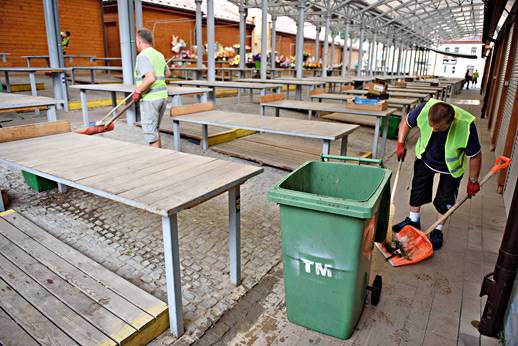 – Są to porządki generalne, pracownicy zamiatają plac, zbierają odpady, w razie potrzeby myją też stoły i żaluzje w pawilonach. Każdego dnia od wczesnego ranka na bieżąco usuwają do dwóch większych wiat śmietnikowych kosze na śmieci, a w ich miejsce ustawiają puste. Sprzątają plac do wieczora. Wszystkie odpady, jakie nagromadziły się danego dnia, są wywożone na miejskie wysypisko – wyjaśnia Jacek Chrobak, dyrektor Targowisk Miejskich w Tarnowie.