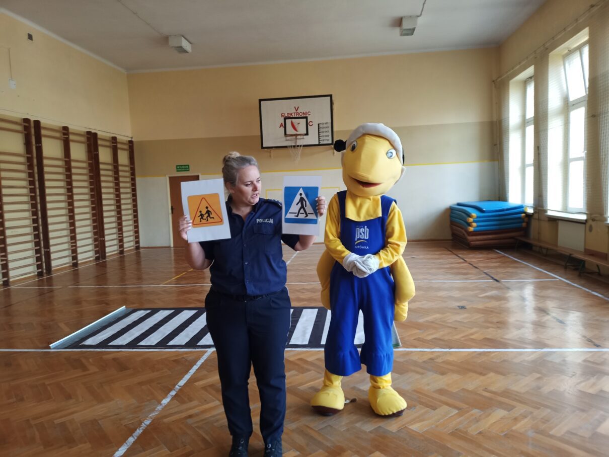 Wielka Mrówka wraz z policjantami Komendy Miejskiej Policji w Tarnowie przemierzają lokalne szkoły, aby spotkać się z dziećmi klas pierwszych szkół podstawowych.