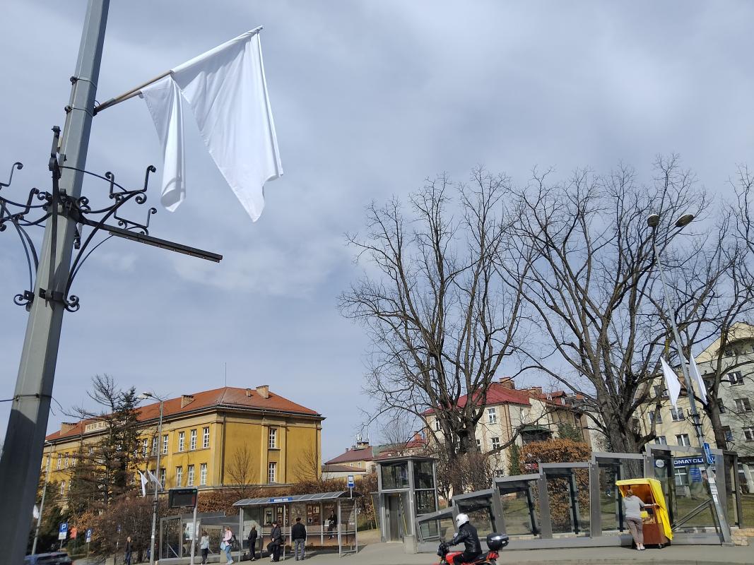 Wzdłuż ul. Mickiewicza i al. Solidarności w Tarnowie, a także oraz na siedzibie BWA – Pałacyku Strzeleckim powiewają białe flagi. Ich instalacja jest częścią wystawy Grzegorza Hańderka „Podmuch”.