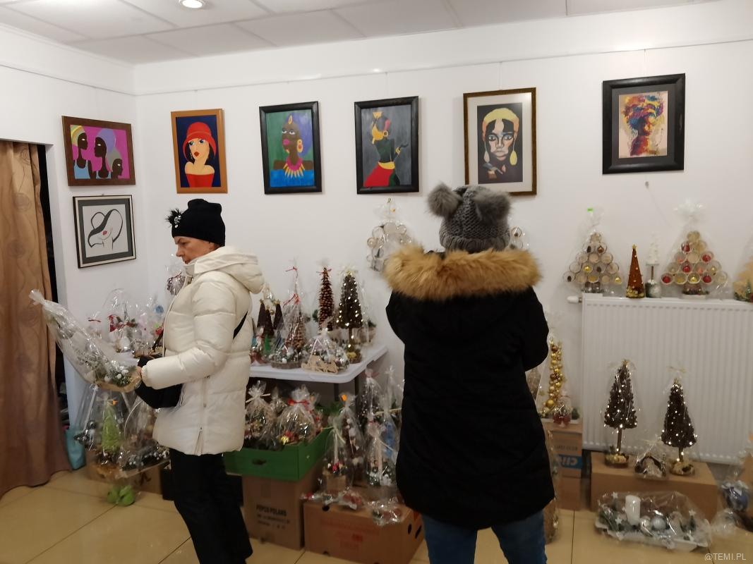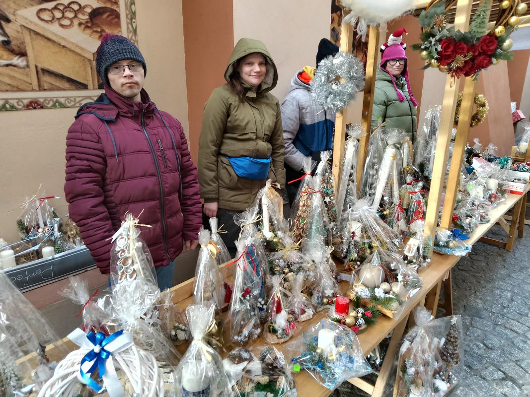 Bożonarodzeniowy kiermasz z udziałem podopiecznych warsztatów terapii zajęciowych, mimo bardzo wietrznej pogody przyciągnął tłumy klientów.