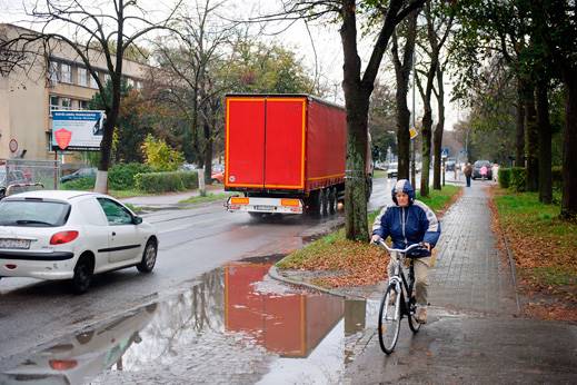 Ciężarówki o dopuszczalnym obciążeniu do 40 ton, w tym tiry przewożące niebezpieczne ładunki, jeżdżą ulicami biegnącymi bezpośrednio pod oknami, na dodatek ulice i ich otoczenie nie są przystosowane do intensywnego ruchu ani samochodów o dużym tonażu.