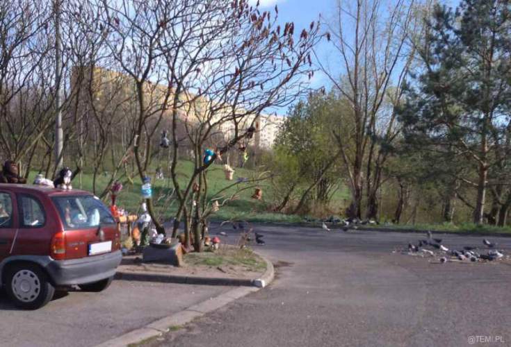 – Trudno powiedzieć, co miało tak naprawdę przedstawiać to miejsce. Na pewno wbite w ziemię pourywane głowy ogrodowych figurek, jak i w różny sposób wyeksponowane misie nie były normalnym widokiem. Mimo tego miejsce było chętnie odwiedzane przez mieszkańców, a przede wszystkim gromadę gołębi – wspomina jeden z kierowców korzystających z parkingu.