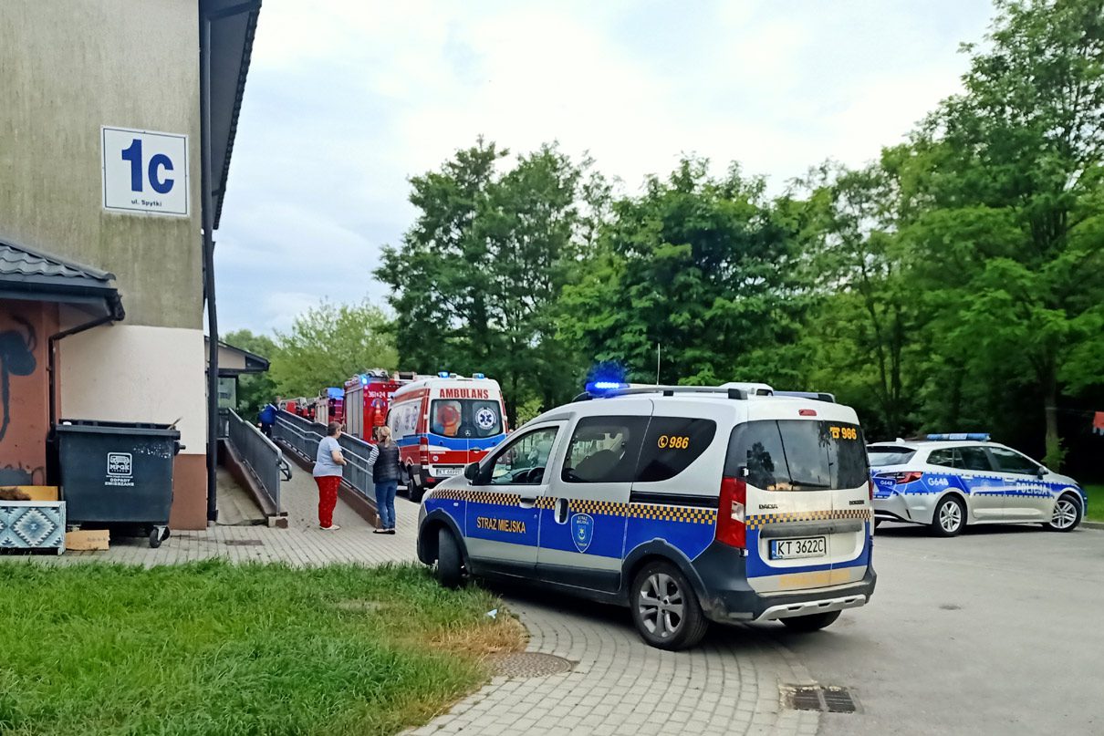 Przed budynkiem wielorodzinnym przy ulicy Spytki z Melsztyna w Tarnowie trwa akcja ratunkowa z udziałem strażaków, policjantów, ratowników medycznych i strażników miejskich. Powodem interwencji były gęste kłęby dymu wydobywające się z jednego z mieszkań.