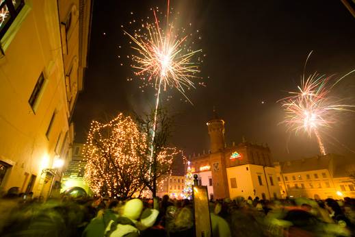 – Jeszcze kilka lat temu zabawa sylwestrowa organizowana na tarnowskim Rynku kosztowała ponad 100 tys. zł, czasami nawet ponad 150 tys. zł; stawki za koncerty są wtedy wysokie. To były koncerty z udziałem gwiazd, ale z drugiej strony – z różnym zainteresowaniem ze strony samych mieszkańców Tarnowa. Doszła jeszcze konkurencja w postaci organizowanych i transmitowanych przed duże stacje telewizyjne ogromnych koncertów z udziałem bardzo znanych wykonawców. Budżety tych koncertów liczone są w milionach złotych. Uznaliśmy zatem, że rezygnujemy z koncertu w noc sylwestrową na rzecz pokazu sztucznych ogni i organizowania większych koncertów w sezonie letnim. I ta formuła się sprawdza, co zresztą obserwowaliśmy już wcześniej. Tarnowianie gromadzą się na płycie Rynku bliżej północy, koncerty nie miały odbiorców. Sporą niewiadomą była zawsze pogoda – tłumaczy Marcin Sobczyk, dyrektor wydziału kultury w tarnowskim magistracie.
