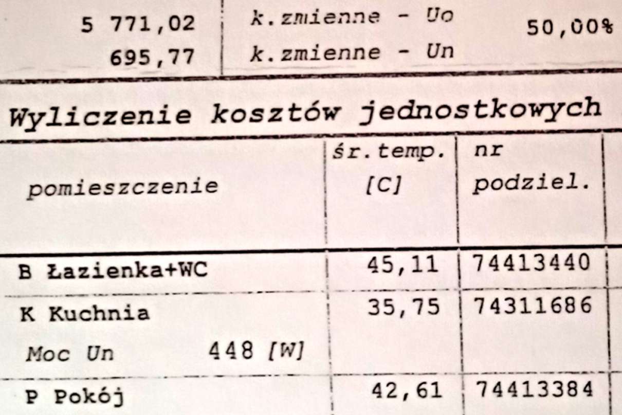 Po pewnym okresie z poznańskiej Uniki nadeszła kolejna korespondencja. Znajdował się w niej nowy rachunek. Opiewał na kwotę ponad 565 zł. Według nowego rozliczenia w łazience było 19,2 stopnia Celsjusza, w kuchni o jeden stopień mniej, w obu pokojach nieznacznie ponad 20 stopni. Czyli normalnie.