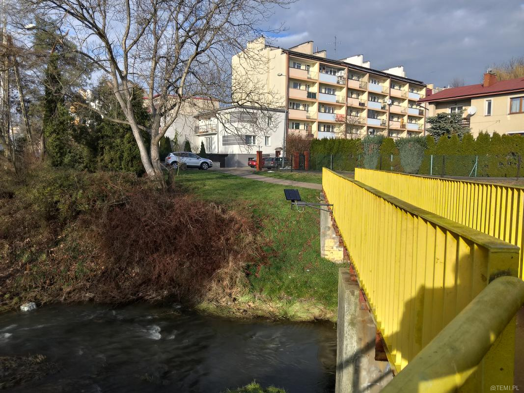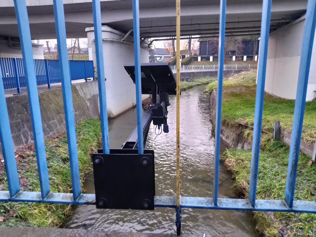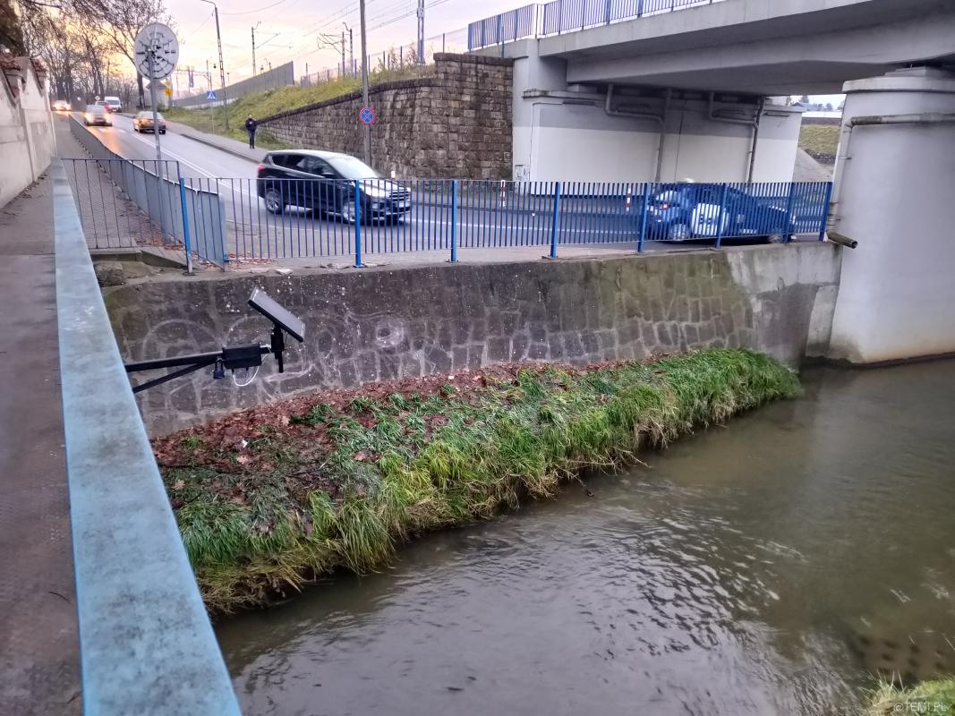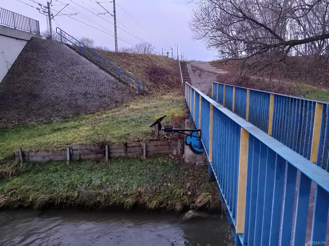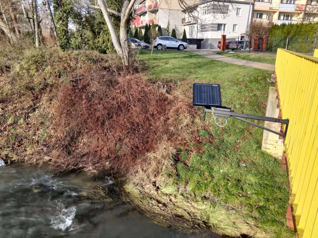 Przekrój koryta rzeki, aktualny poziom lustra wody, dobowy wykres historii pomiarów, a także przegląd pomiarów historycznych można śledzić na stronie: https://monitoring.prospect.pl/