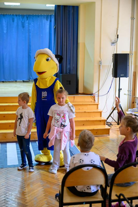 W poniedziałkowe przedpołudnie maskotkę Mrówki Tarnów i Mrówki Zakliczyn można było spotkać m.in. w Szkole Podstawowej nr 24 im. Mikołaja Kopernika w Tarnowie.