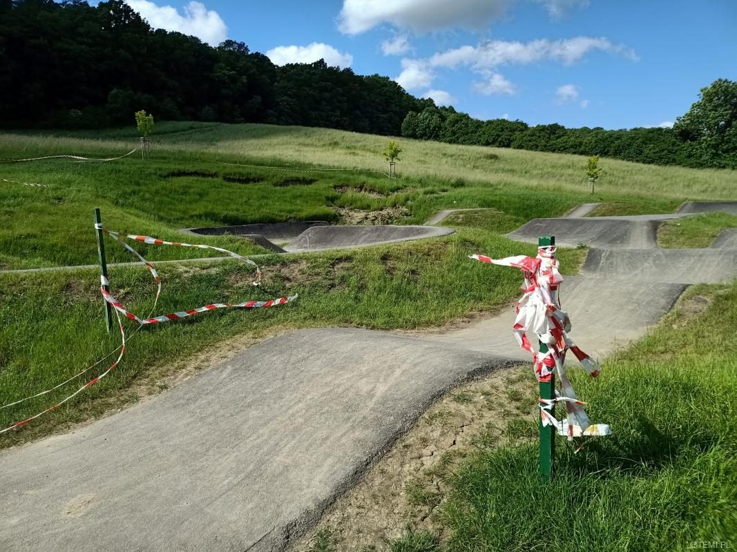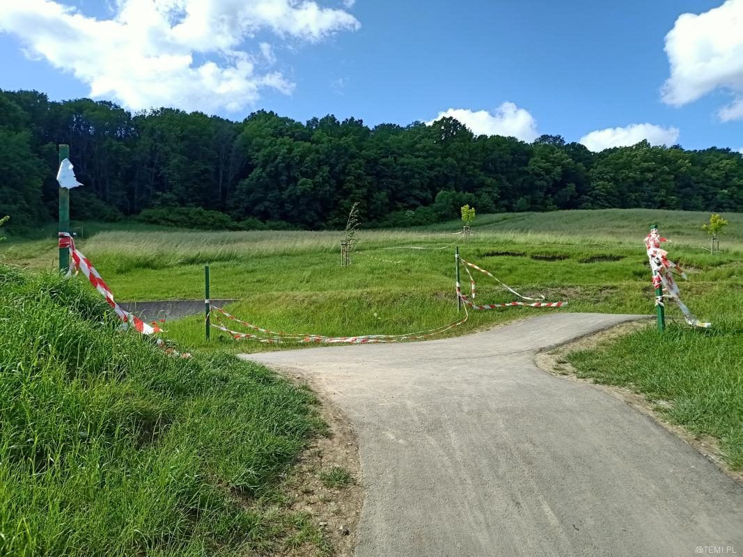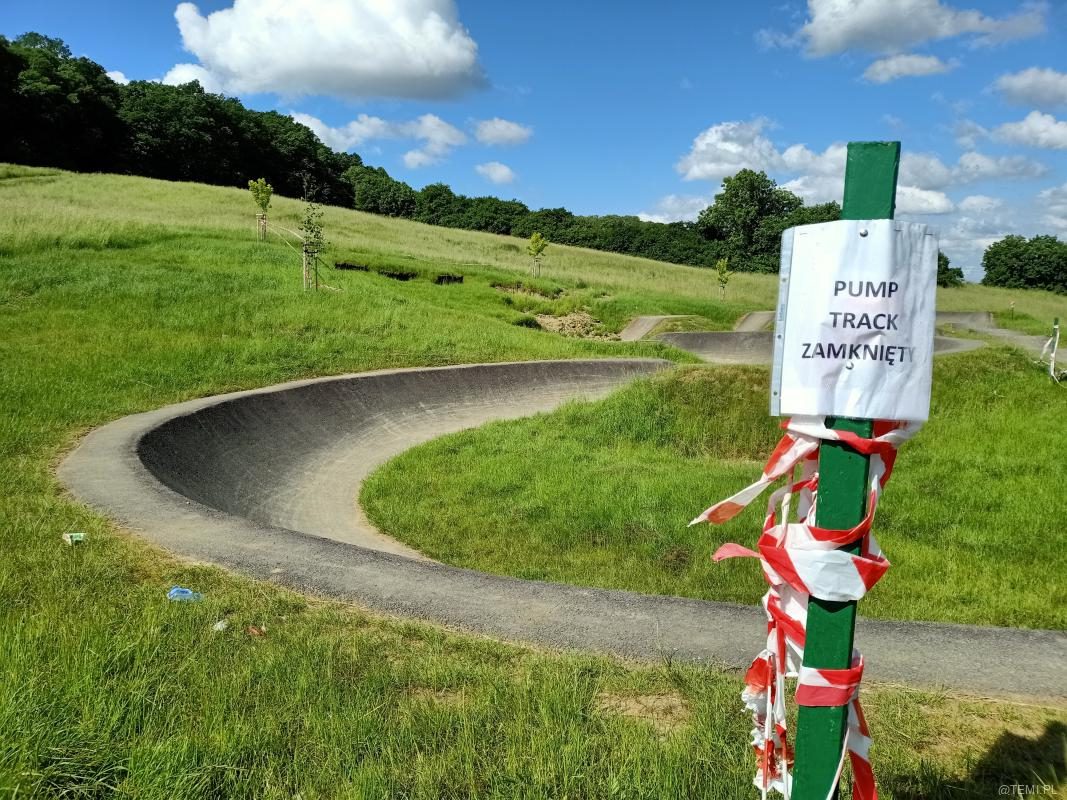 Problemy z pumptrackiem są na tyle poważne, że administrator obiektu zdecydował o jego czasowym zamknięciu. Wokół toru wiszą biało-czerwone taśmy.