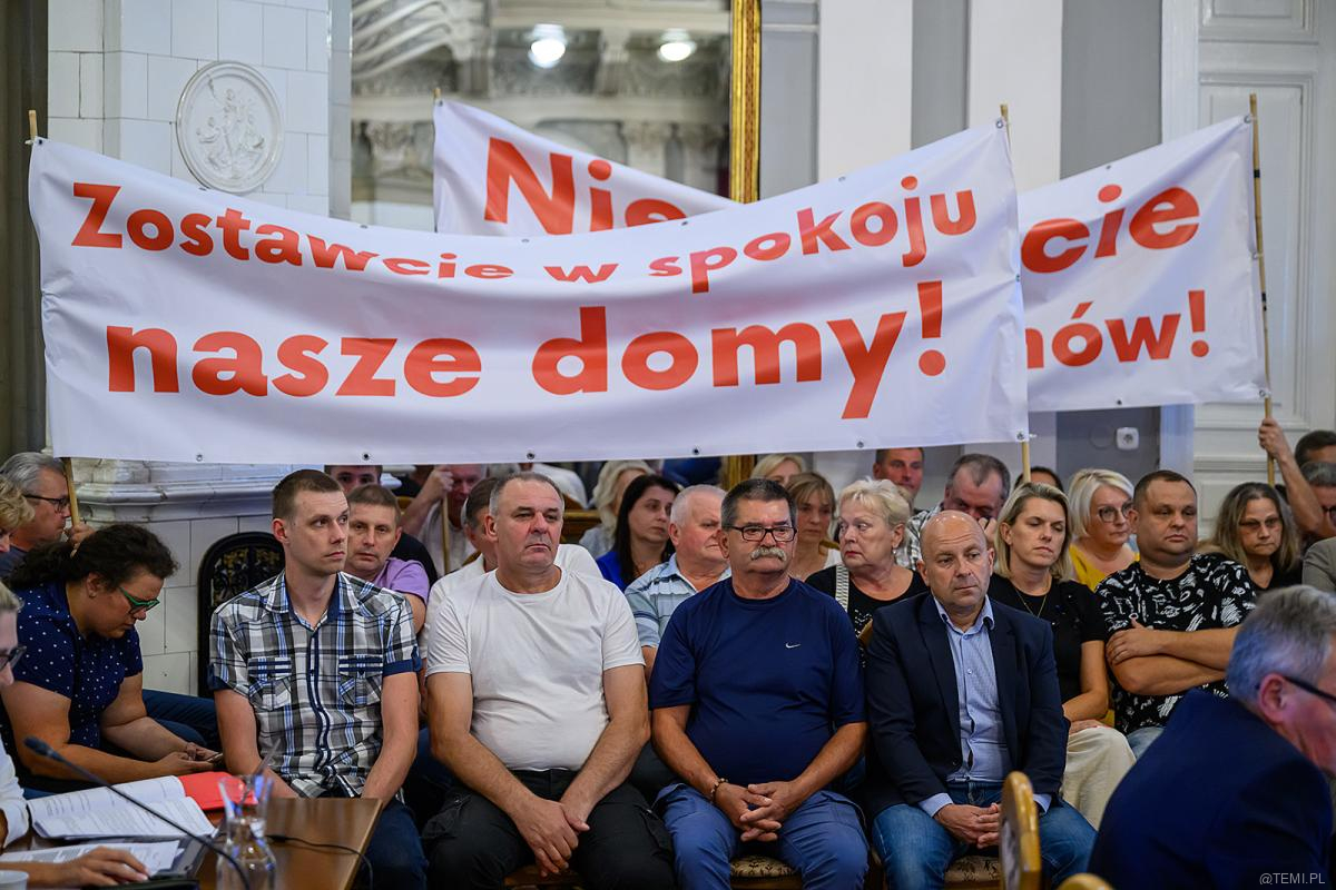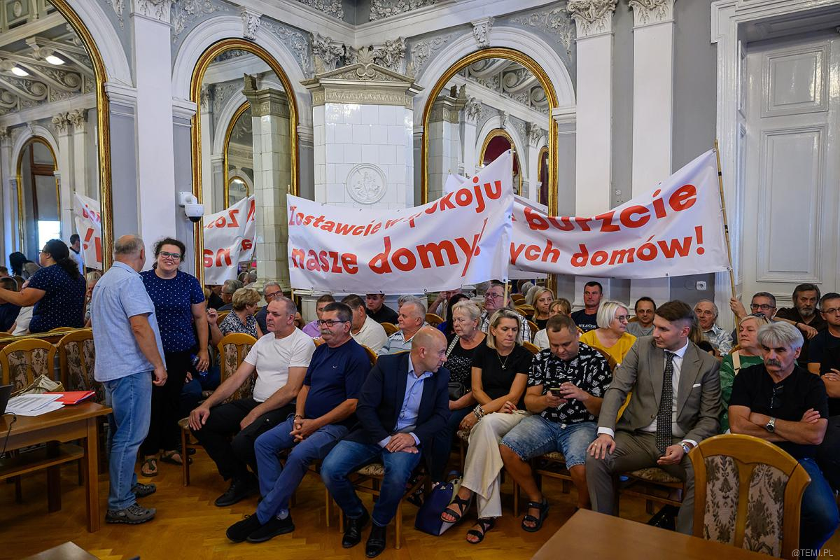 W Sali Lustrzanej pojawiły się też transparenty z napisami: „Zostawcie w spokoju nasze domy” czy „Obwodnica to hałas i spaliny”.