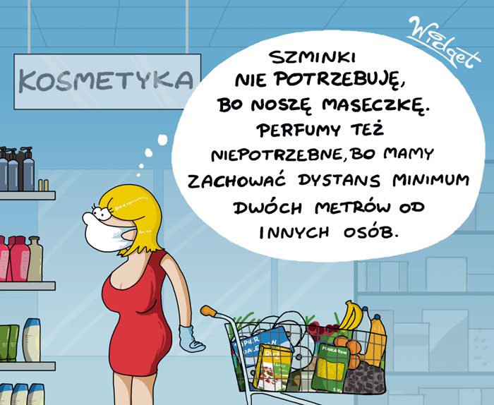 Wczoraj przeczytałem, że dwumetrowa odległość między osobami nie jest wystarczająca. Koronawirus lubi latać dalej. Zaleca się około ośmiu metrów. Od razu wyobraziłem sobie kolejkę do sklepu. Dziesięć osób musiałoby zająć odcinek długości osiemdziesięciu metrów. Czasem mogłoby zabraknąć miejsca.