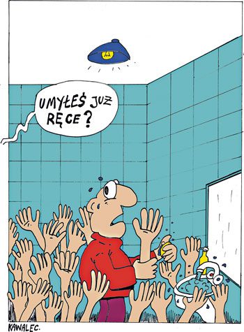 Czas pandemii przyspiesza wdrażanie niektórych wynalazków. W Rzeszowie, w którym znalazłem się na kilka godzin, mają już bezdotykową aktywację świateł sygnalizacji ulicznej. Stoi się przed przejściem i nic nie trzeba naciskać. Urządzenie automatycznie wykrywa pieszych i rowerzystów oczekujących na zielone światło. Kilka miesięcy temu w Tarnowie na skrzyżowaniach zamontowano sygnalizację, którą wzbudza się po naciśnięciu małego niewygodnego guziczka. Najłatwiej można to zrobić palcem wskazującym. Zupełny przeżytek, nie tylko w okresie epidemii, której – rzecz jasna – nikt wcześniej nie mógł przewidzieć. Taki guziczek, używany przez tysiące pieszych, to zbiorowisko rozmaitych wirusów i bakterii.