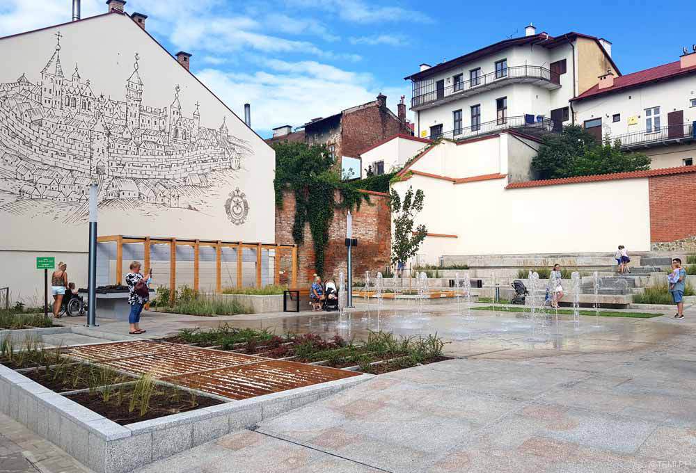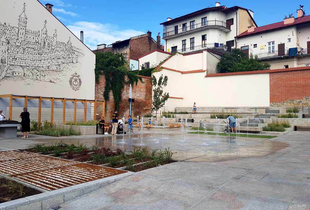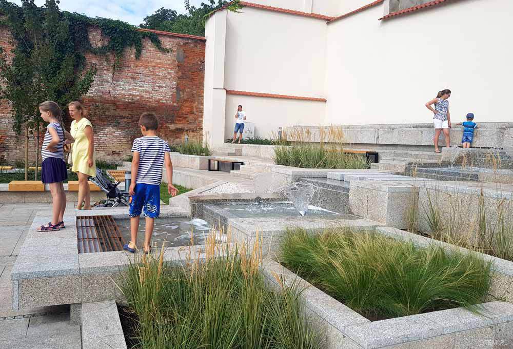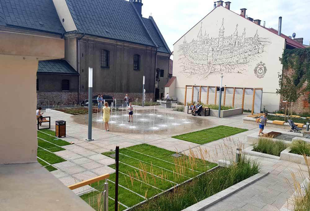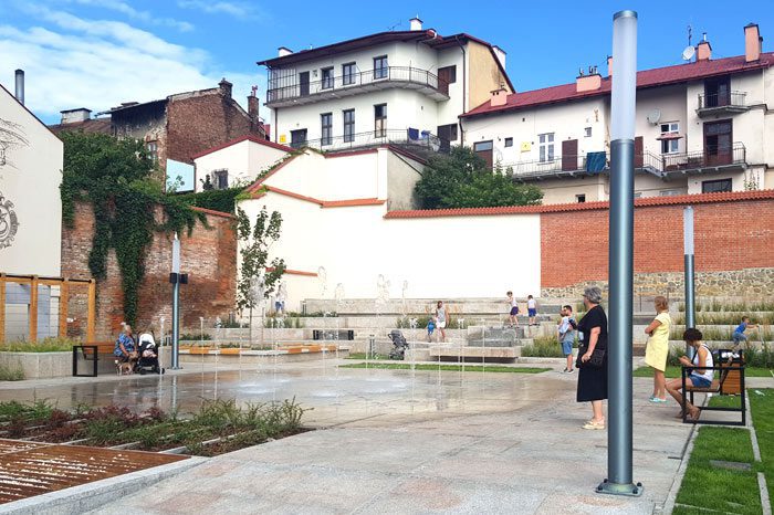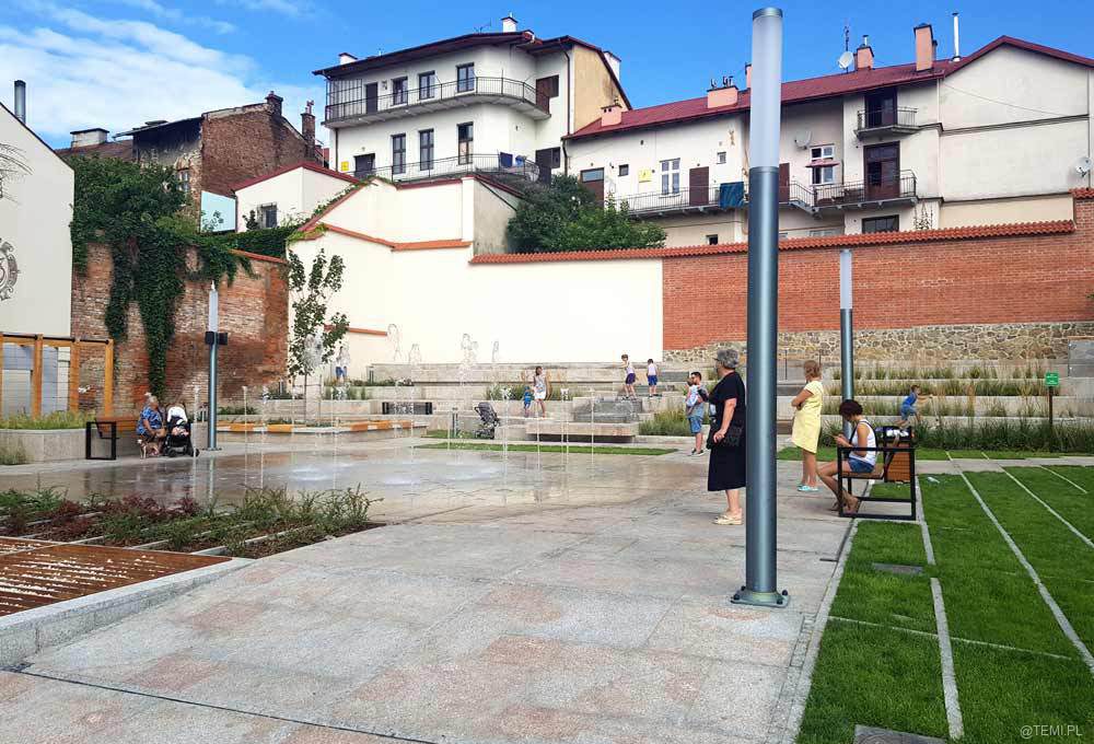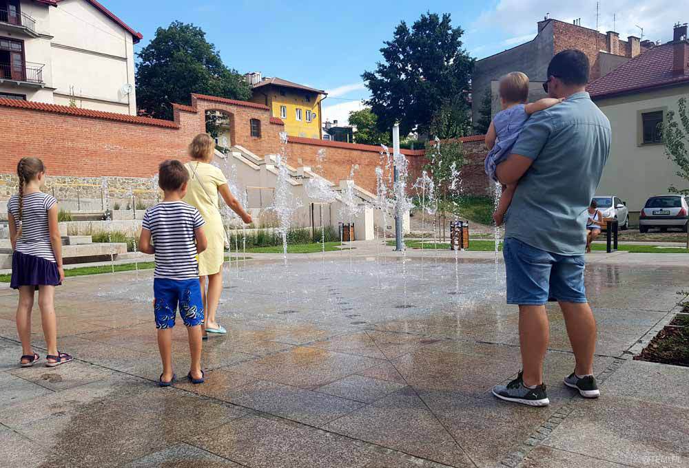 Wodotryski na zrewitalizowanym skwerze przy ul. Bernardyńskiej w pobliżu Małych Schodów w Tarnowie cieszą już oczy tarnowian. Inwestycja realizowana została w ramach projektu rewitalizacji tarnowskiej Starówki „Nowe przestrzenie zdarzeń”.
