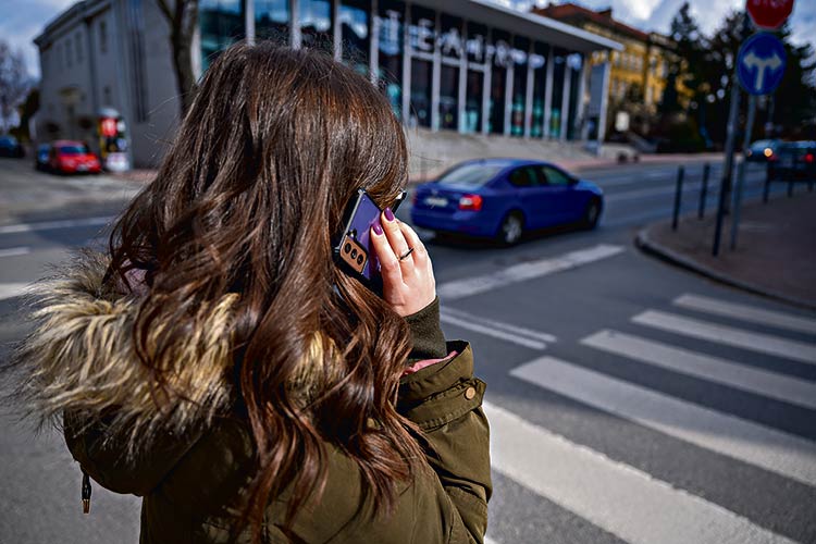 Z telefonem na przejściu