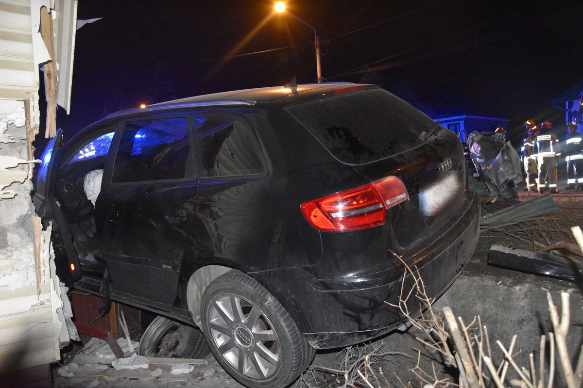 Samochód zjechał z drogi powiatowej i wbił się w jeden ze znajdujących się w pobliżu domów, niszcząc wiatrołap oraz ogrodzenie. Mieszkańcom budynku nic się nie stało. Nie ucierpieli też kierowca i pasażer pojazdu. Obaj mężczyźni trafili do Policyjnej Izby Zatrzymań, ponieważ na miejscu zdarzenia nie udało się ustalić, który z nich kierował audi.