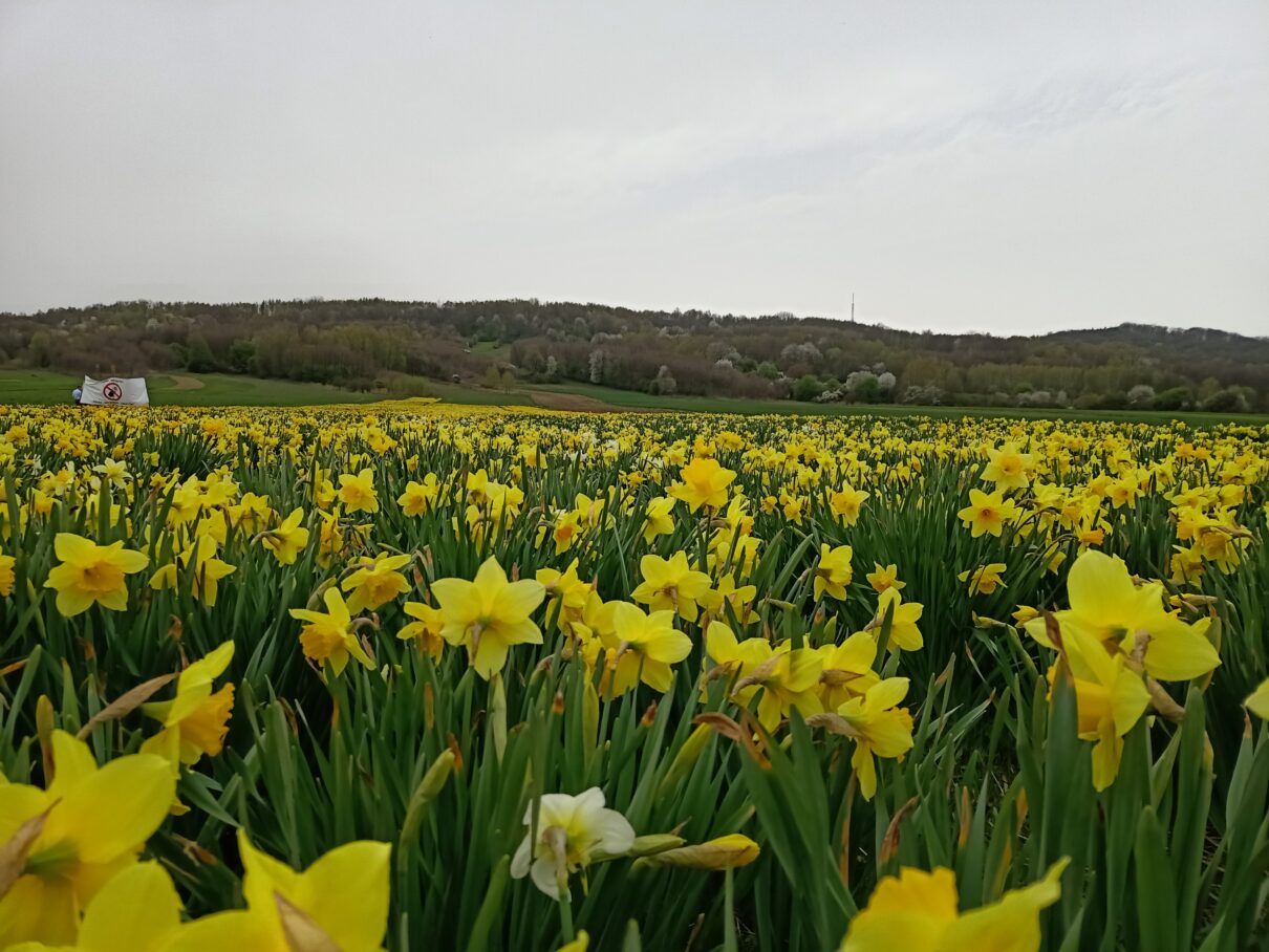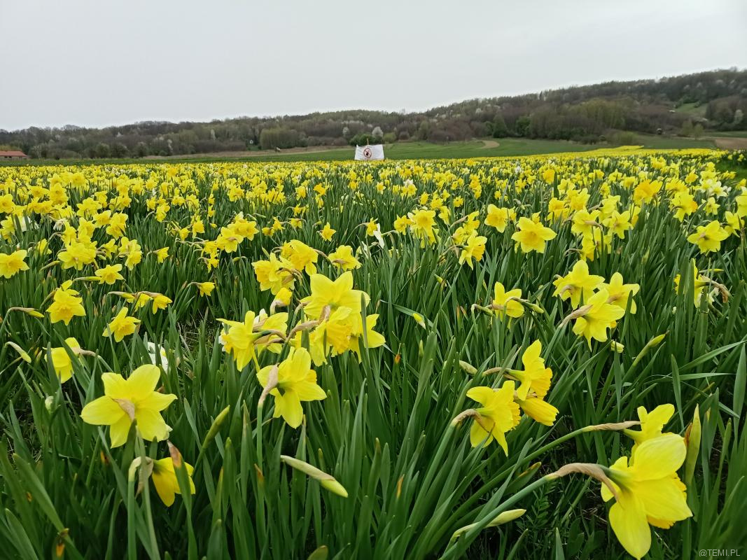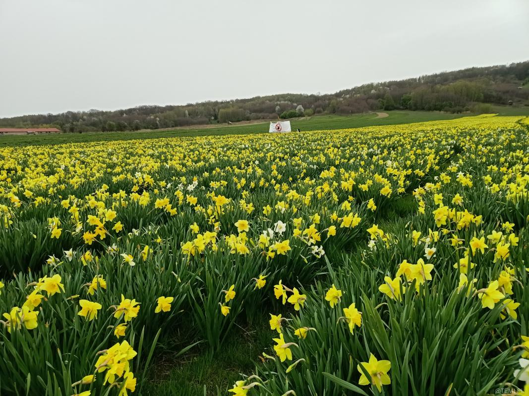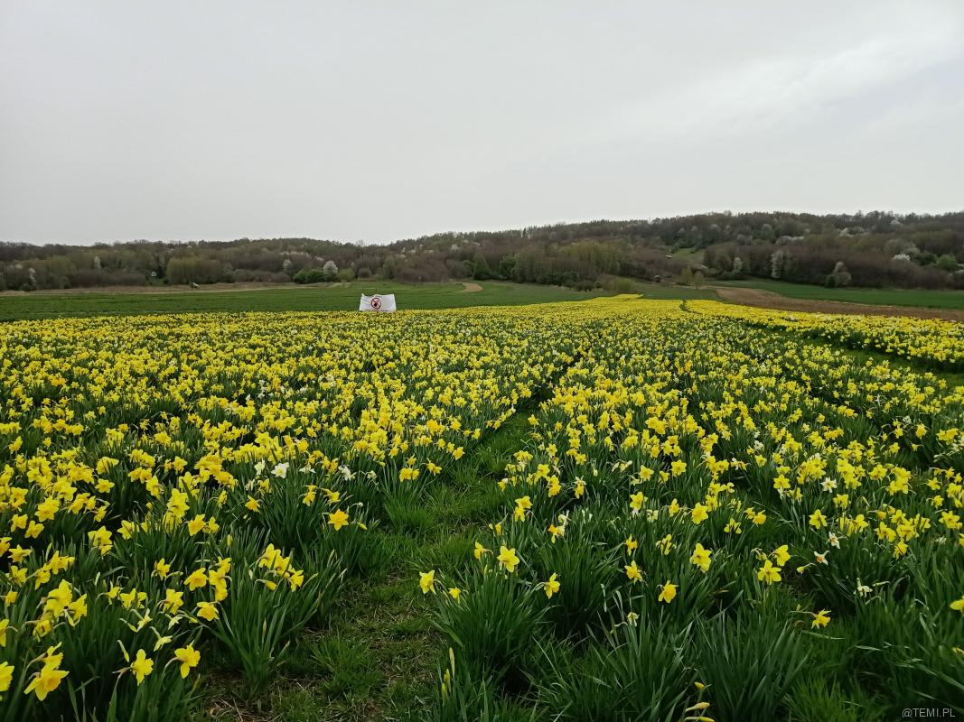 Pole, na którym rosną żonkile jest własnością prywatną. – Zakaz zrywania kwiatów – przypominają właściciele działki.