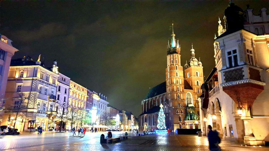 Nigdy wcześniej nie widziałem tak pustego Krakowa w sobotę o godzinie 20. W sumie to nigdy tak pustego Krakowa nie widziałem o żadnej porze, nawet o 4-5 rano. Nawet w czasie potopu lejącego się z nieba w Krakowie zawsze był ruch i gwar. Tym razem przywitała nas wszechobecna pustka, która nijak się nie komponowała z pojawiającym się wystrojem świątecznym na krakowskim rynku. Mały Rynek – świecąca kostka brukowa i zero ludzi. Rynek Główny to samo. Od czasu do czasu ktoś szedł, ale ogólnie totalna i dołująca pustka pilnowana przez jeden pojazd Straży Miejskiej, która na widok osób bez masek najnormalniej w świecie postanowiła zrobić kółko dookoła rynku zapewne po to, by nic nie zrobić. Osobiście bardzo mi się taka postawa spodobała, pomachaliśmy strażnikom i poszliśmy dalej.