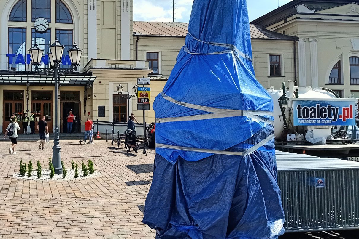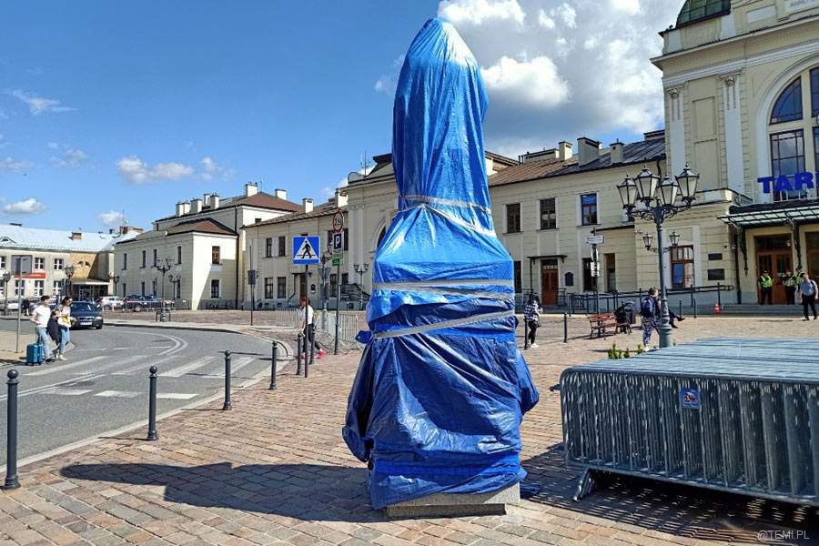 Kontrowersyjny monument został zamontowany dzisiaj (17 czerwca) na postumencie, który od kilku dni stoi na placu Dworcowym w Tarnowie. Odsłonięcie pomnika zaplanowano jutro po południu około godz. 15.