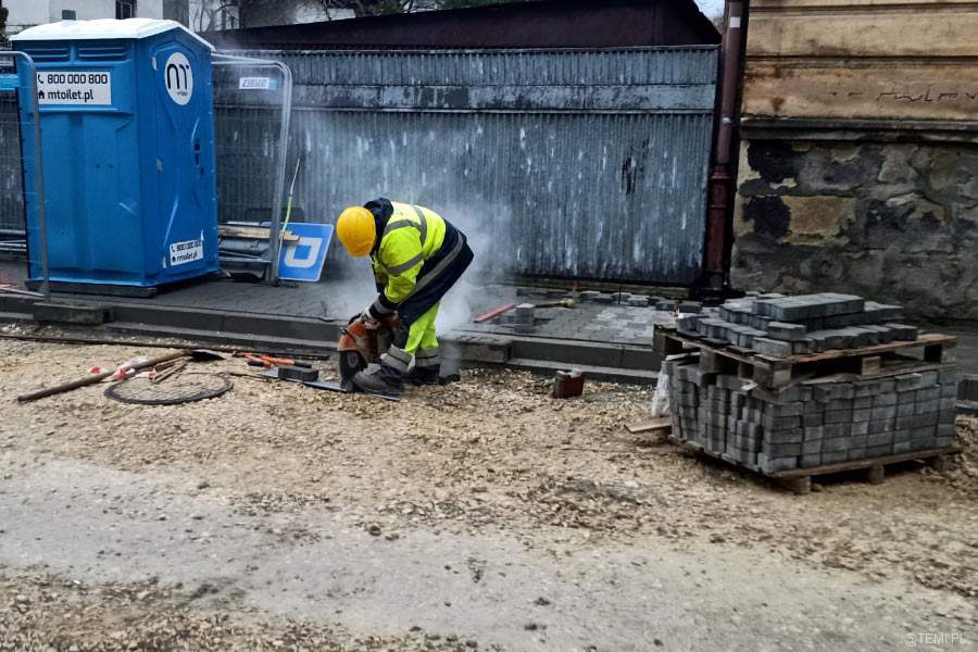 Dodatnia temperatura sprzyja pracom drogowym. Choć do końca zimy pozostał jeszcze miesiąc, to wzdłuż rozkopanych kilka miesięcy temu ulic Krasińskiego i Nowy Świat, można spotkać kilkudziesięciu robotników.