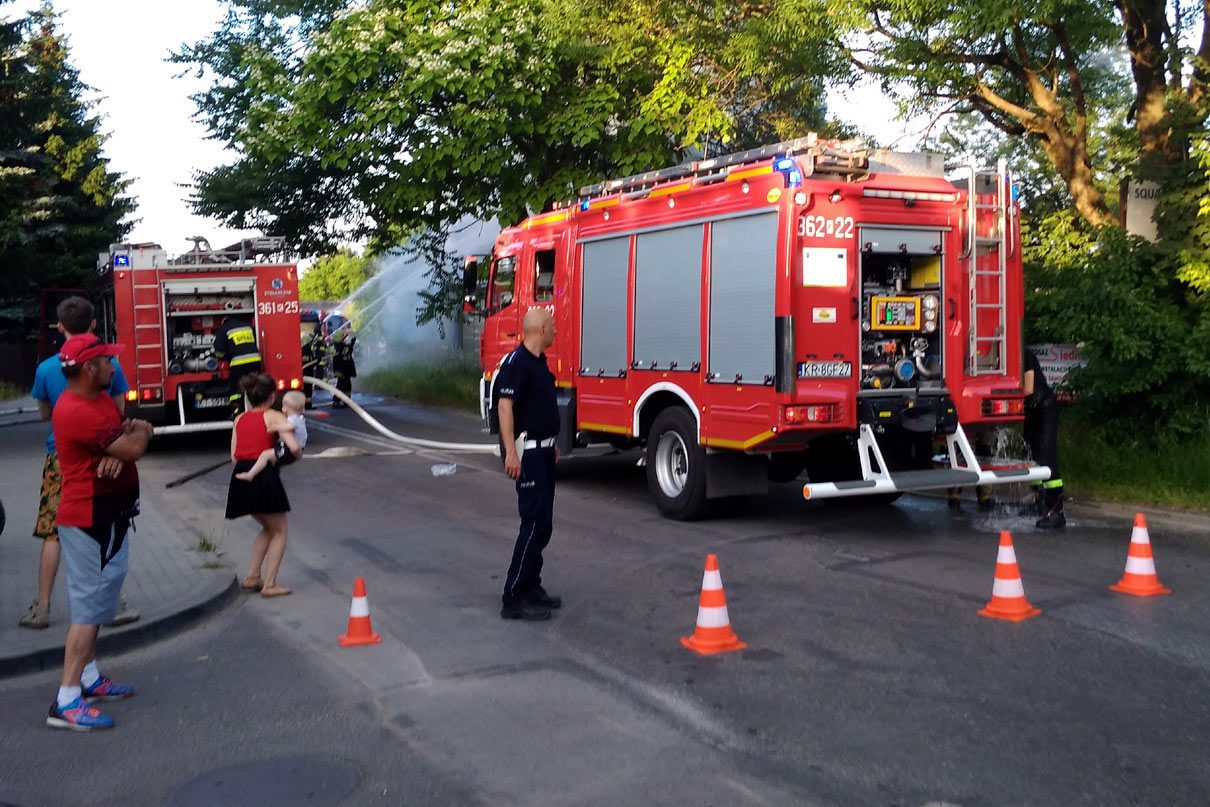Kłęby dymu pokrywają wschodnią część Tarnowa. Sytuacja jest szczególnie poważna, gdyż w odległości kilkudziesięciu metrów od płonącego domu znajduje się stacja benzynowa.