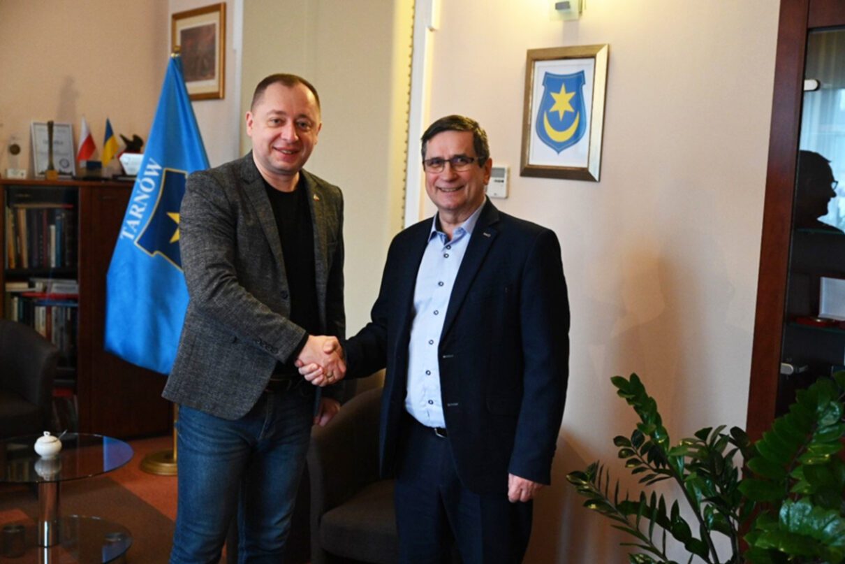 Prezydent Tarnowa Roman Ciepiela gościł dzisiaj (14.02) w siedzibie Urzędu Miasta przedstawicieli władz samorządowych ukraińskiego Tarnopola – przewodniczącego Rady Miasta Igora Hirchaka oraz kierownika Wydziału Kontaktów Międzynarodowych i Turystyki Wołodymyra Kaszyckiego.