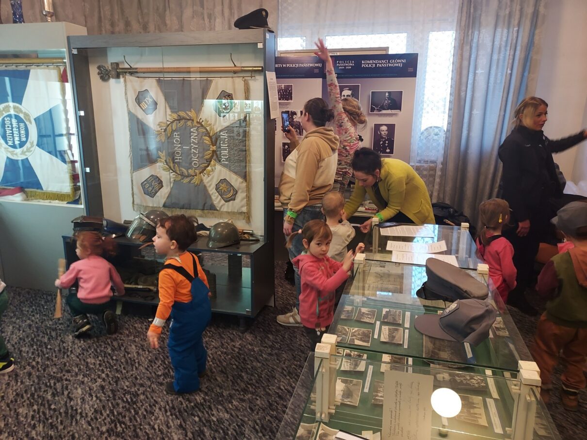 Spotkanie było okazją zobaczenia motocykli i radiowozów policyjnych. Dodatkowo wizyta najmłodszych okraszona była ciekawymi opowieściami oficera prasowego, który oprowadził najmłodszych po izbie tradycji. Dzielnicowa pokazała z kolei specjalny strój policjanta do zabezpieczeń imprez masowych, a technicy kryminalistyki odkryli przed przedszkolakami, co kryje „tajemnicza walizka”, którą obserwujemy na miejscu przestępstwa.