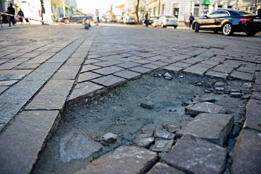 Efekty remontu górnego odcinka ul. Krakowskiej (od ul. Krasińskiego do ul. Targowej), trwającego od maja 2011 roku do wiosny 2012 roku, to spękane i wypadające kostki, czyli totalna fuszerka. Inwestycja była zrealizowana przez firmę MK BUD za ponad 7 mln zł, dziś miasto procesuje się z wykonawcą, domaga się 1,6 mln zł odszkodowania. Do wyroku droga daleka, jednoznaczne wskazanie winnego okazuje się trudne. Strony przerzucają się argumentami z ekspertyz, wskazują na winę materiału (zbyt cienkie płyty porfirowe) i wykonania (prace prowadzone w niskich temperaturach), projektu (zdaniem specjalistów pominięto wykonanie specjalnych szczelin przenoszących obciążenia)…