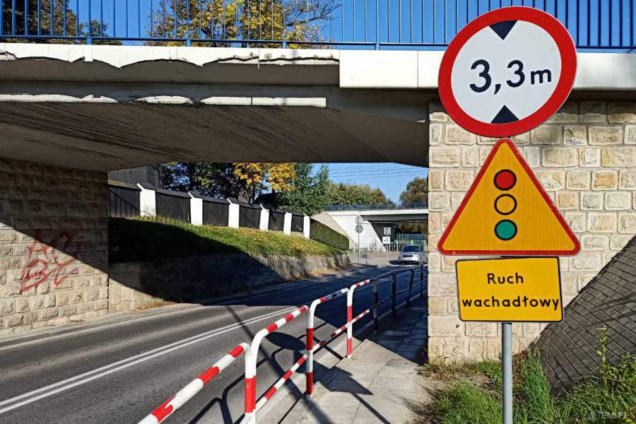 Przy wiadukcie kolejowym nad ul. Tuchowską pojawiły się znaki informujące o zmianie organizacji ruchu.