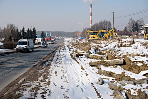 Na razie ekipy drogowców prowadzą prace poza pasem drogowym przy Spokojnej: czyszczą teren po stronie północnej drogi, gdzie wybudowana zostanie dodatkowa jezdnia, wycinają drzewa, burzą niektóre zabudowania. Równocześnie prace prowadzą Tarnowskie Wodociągi, które muszą przenieść magistralę wodociągową.