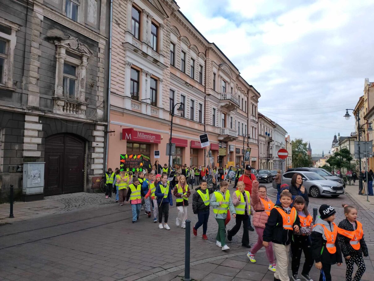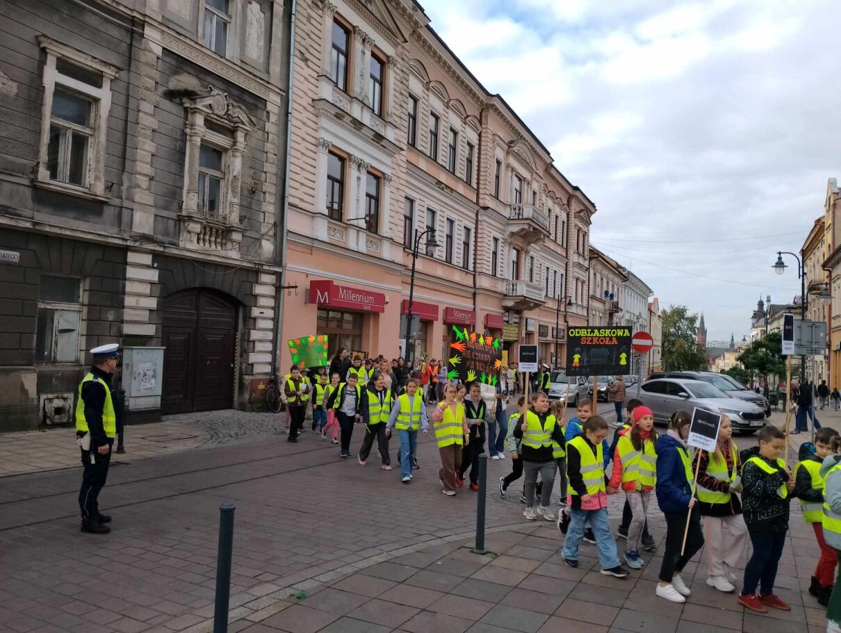 Uczniowie Szkoły Podstawowej Integracyjnej nr 25 w Tarnowie wraz z asystą policji przeszli ul. Krakowską, aby promować noszenie odblasków. W czasie swojego przemarszu śpiewali piosenki o tematyce bezpieczeństwa, rozdawali ulotki oraz rozmawiali z przechodniami.