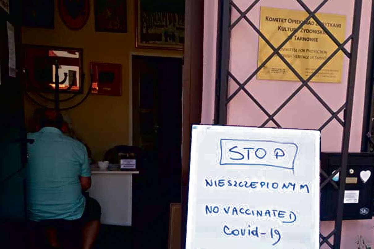 – Pracownicy Komitetu Opieki nad Zabytkami Kultury Żydowskiej w Tarnowie określili się jasno. Zapraszamy serdecznie wszystkich Gości. Niezaszczepionych prosimy o pozostanie na zewnątrz – napisał w mediach społecznościowych jego prezes Adam Bartosz. Przed wejściem do siedziby Komitetu przy Bimie Synagogi Starej ustawił specjalną tablicę z napisem: Stop niezaszczepionym, czym w mieście pod Górą św. Marcina wywołał niemałe zamieszanie.