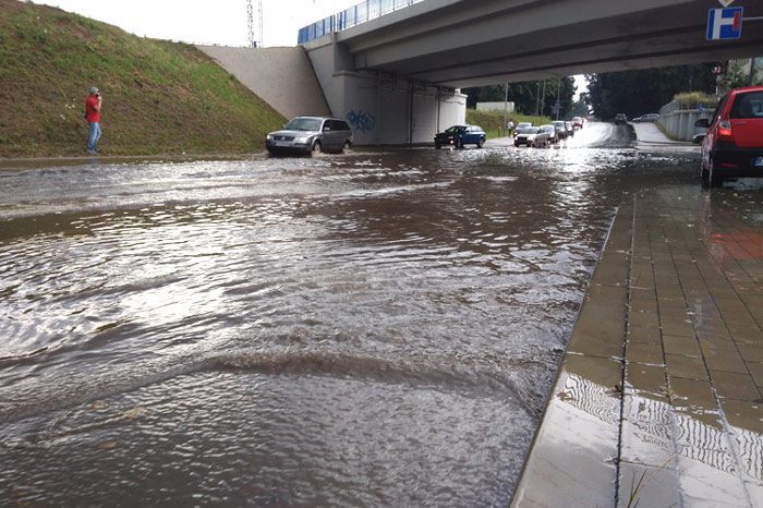 Spore utrudnienia czkają na pieszych i kierowców na ul. Gumniskiej. Zalany został wiadukt.