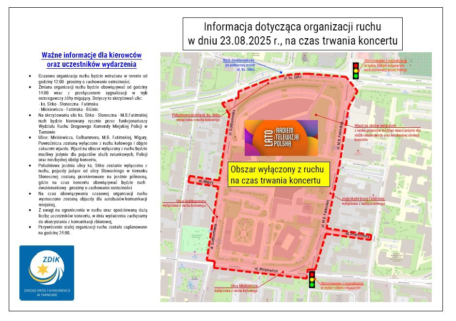 23 sierpnia Tarnów zamieni się w muzyczną stolicę Małopolski. Warto jednak pamiętać, że wraz z atrakcjami kulturalnymi pojawią się także utrudnienia drogowe. Policja apeluje o cierpliwość, rozwagę i stosowanie się do znaków.