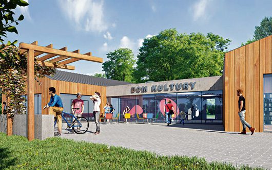 Projekt koncepcyjny zakłada, że nowa placówka będzie służyć rekreacji oraz spełniać funkcje: biblioteki i domu kultury (przestrzeń wystawiennicza, miejsce spotkań, wykładów, zajęć edukacyjnych i taneczno-gimnastycznych). Ważnym założeniem jest otwarcie obiektu na zewnątrz poprzez dużą liczbę przeszkleń i świetliki dachowe. Parterowy budynek zostanie otoczony drewnianymi pergolami, zielenią i zewnętrznymi tarasami. Oprócz biblioteki z czytelnią i salki tanecznej, pojawi się sala wielofunkcyjna z możliwością podziału na dwie mniejsze dzięki przesuwanej ścianie (będą w niej organizowane między innymi seanse kinowe).