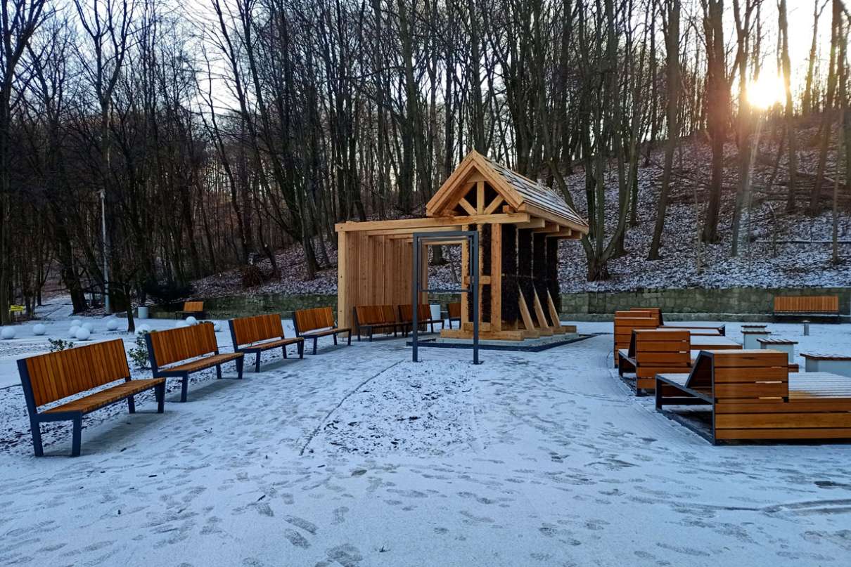 Gotowa jest ogólnodostępna tężnia solankowa wybudowana w miejscu dawnego amfiteatru na Górze św. Marcina, w pobliżu restauracji.