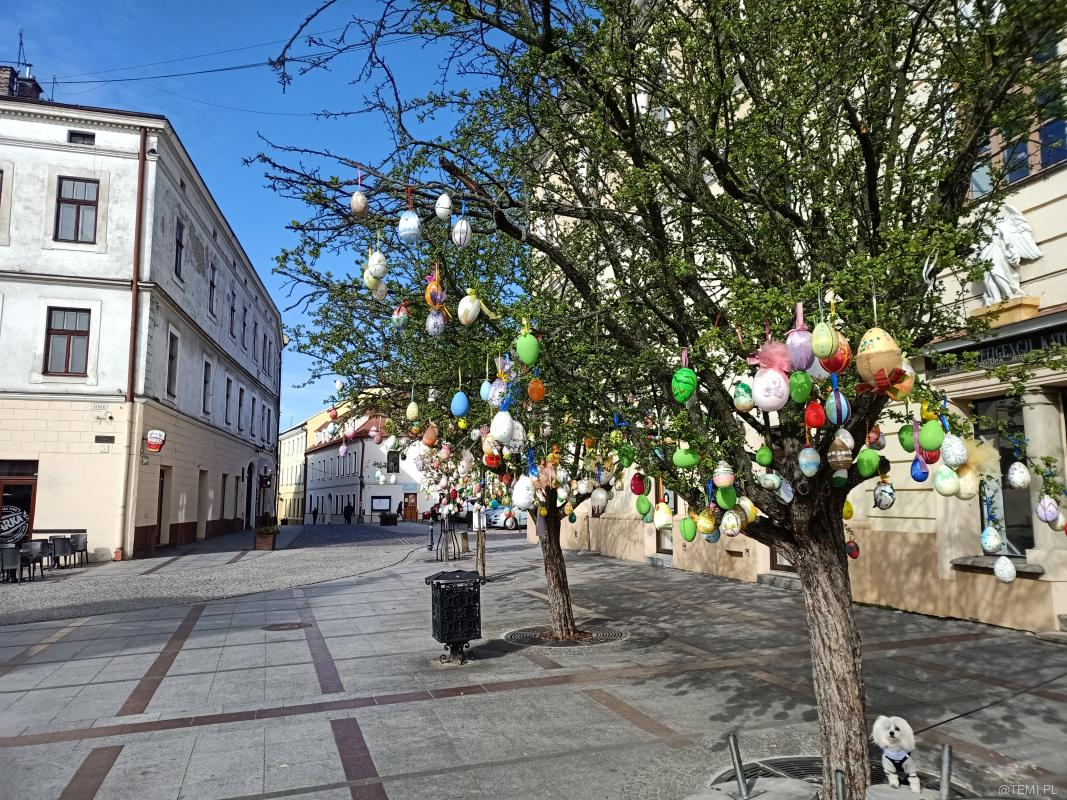 Ręcznie wykonane pisanki zawisły w ostatnich dniach na drzewach i krzewach w centrum Tarnowa.