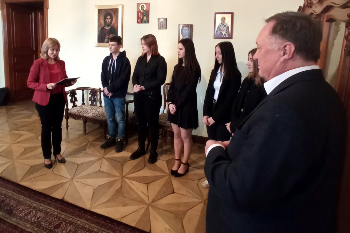 Podczas uroczystości powołania pierwszego w historii tarnowskiego „Ogrodnika” Zespołu Mediatorów Rówieśniczych, który ma swoje umocowanie prawne w Statucie ZSEO, uczniowie: Justyna Jerzykowska, Weronika Miłek, Olivia Mąka, Krystian Pankowski i Kamila Ubas złożyli ślubowanie przestrzegania Kodeksu etycznego mediatora, otrzymali z rąk dyrektora ZSEO Roberta Kozioła Zaświadczenia ukończenia cyklu szkoleń i warsztatów i powołania na mediatorów rówieśniczych ZSEO oraz identyfikatory.
