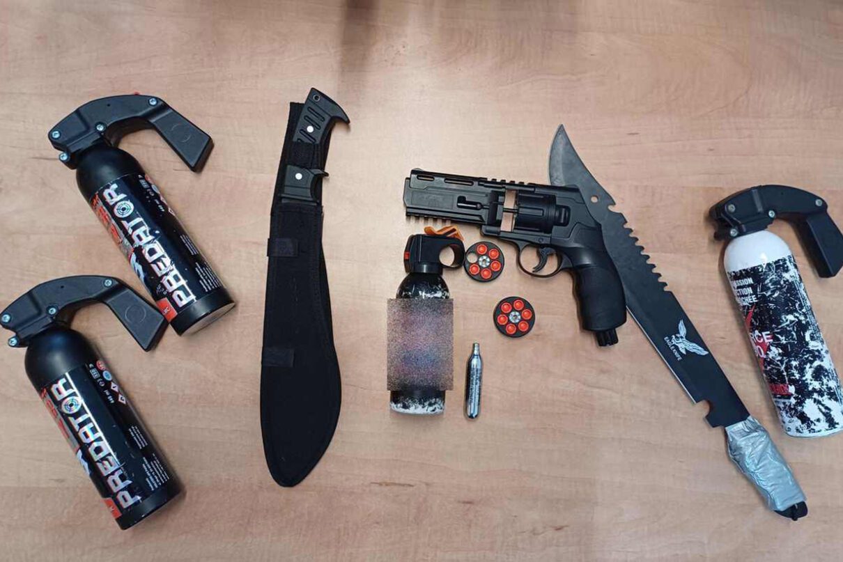 Paweł Klimek, rzecznik prasowy tarnowskiej policji, poinformował, że funkcjonariusze w cywilu patrolując miasto zatrzymali grupę 9 osób, znanych jako pseudokibice jednej z drużyn piłkarskich z Tarnowa. Policjanci odebrali od nich maczety, broń gazową na metalowe śruty oraz sporej objętości butle z gazem pieprzowym.
