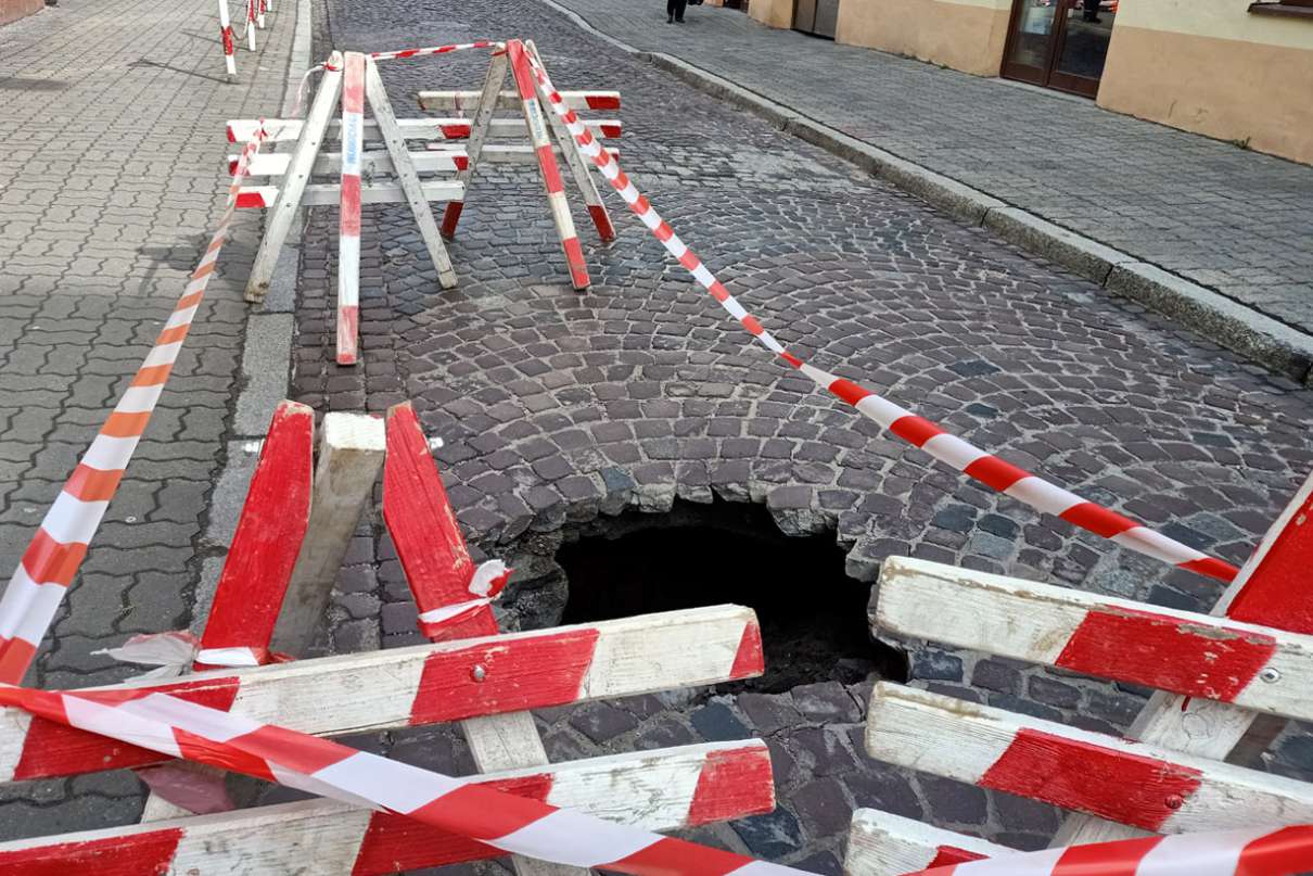 – Dziura pojawiła się po przejeździe auta dostawczego. Huk był porównywalny do wybuchu koła samochodowego – relacjonuje nasz rozmówca. Aktualnie głęboki lej został prowizorycznie zabezpieczony biało-czerwonymi barierkami.