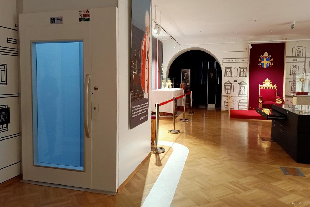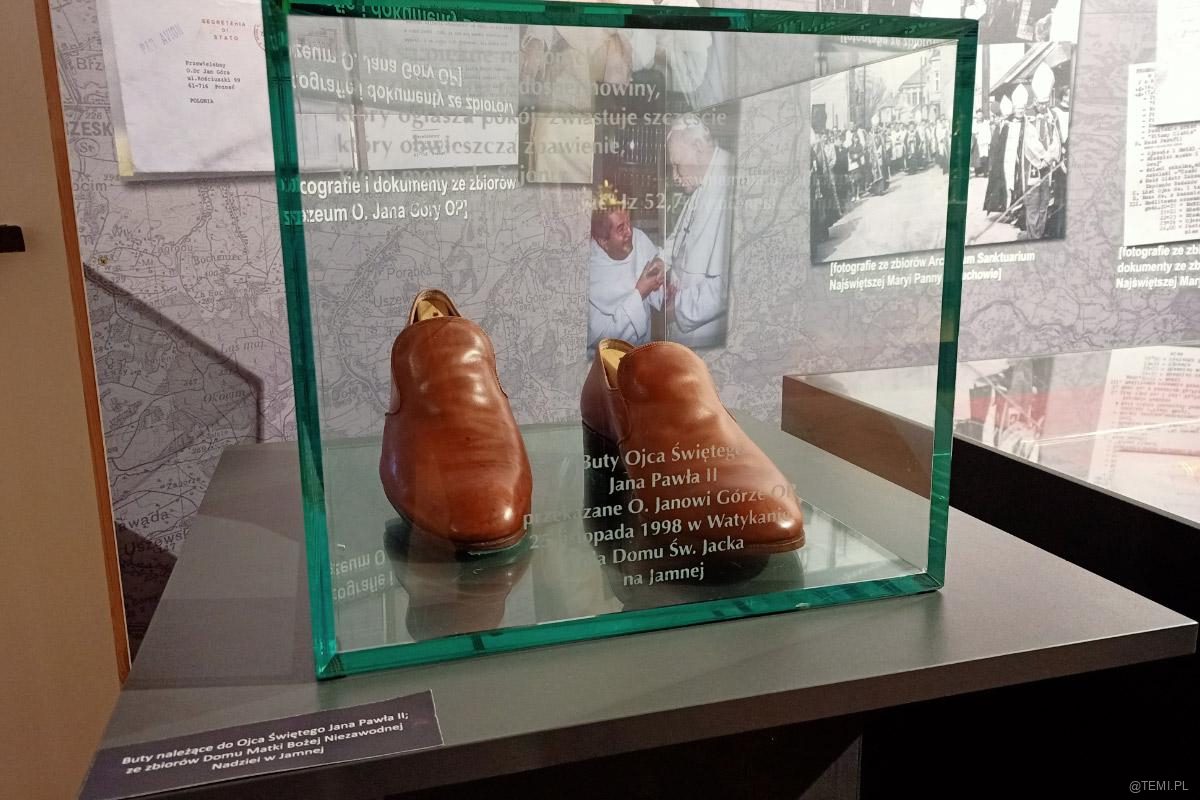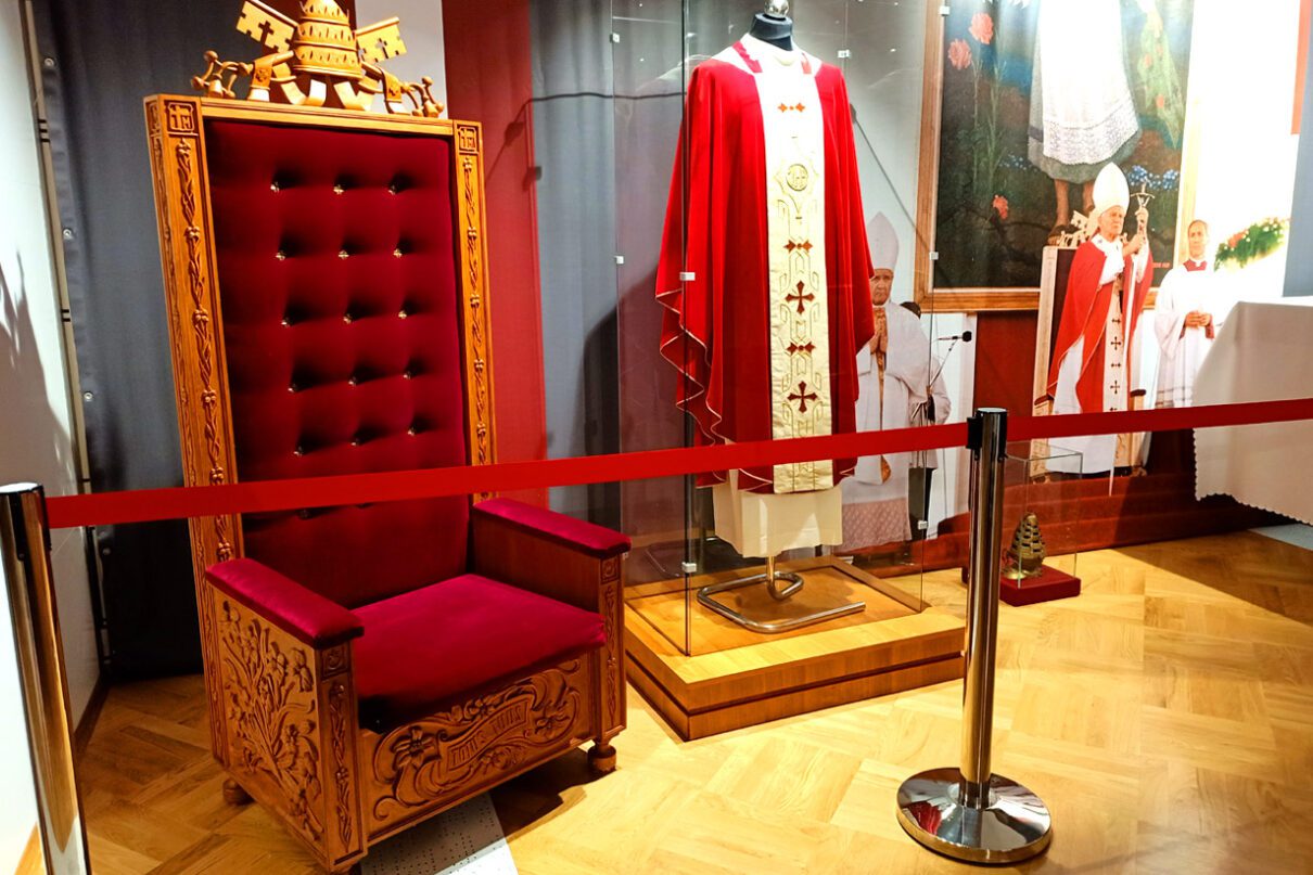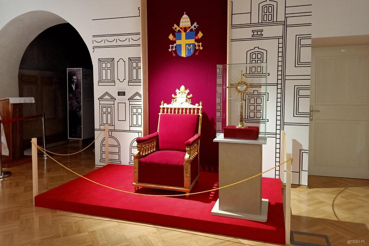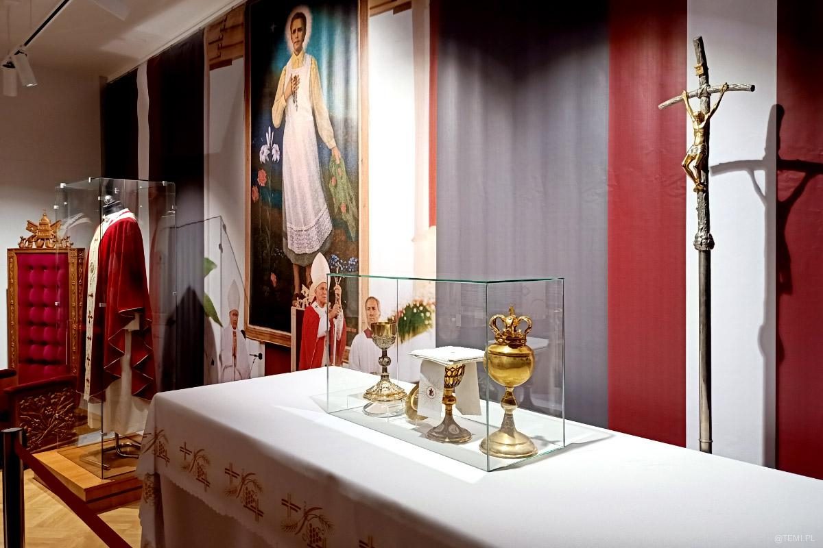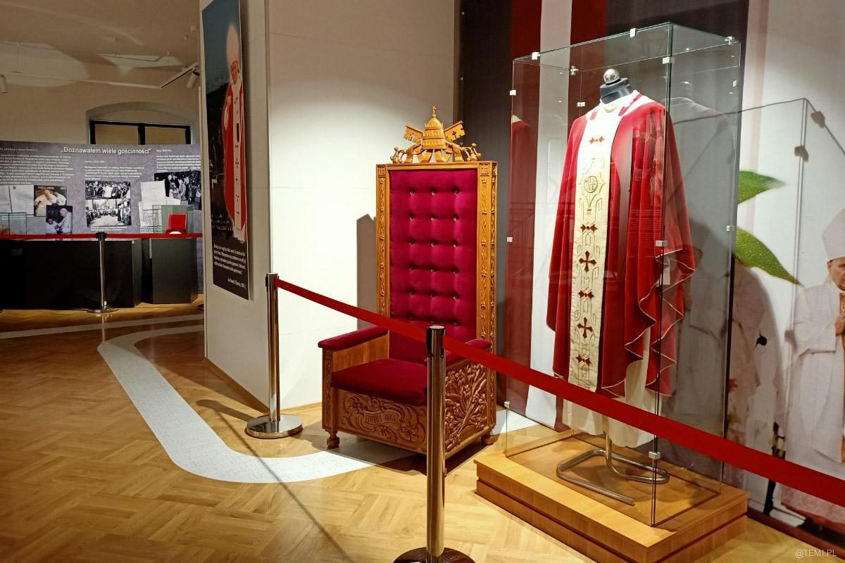 Na pierwszym piętrze w muzeum podziwiać można autentyczne pamiątki związane z pielgrzymką. Również te, których bezpośrednio dotykał ojciec święty.