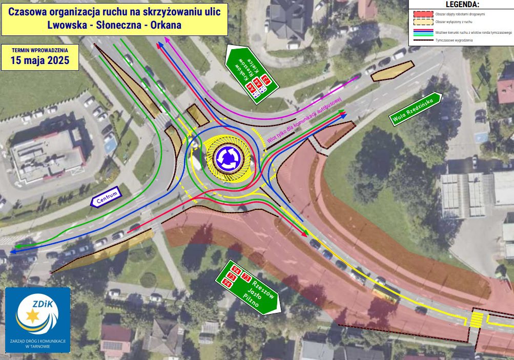 W czwartek 15 maja nastąpi zmiana organizacji ruchu w ciągu DK73 na skrzyżowaniu ul. Lwowskiej z Orkana i Słoneczną.